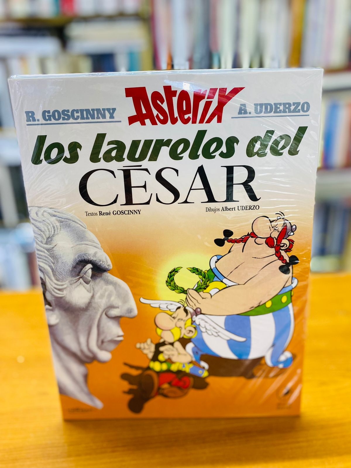 Durante una cena en casa del cuñado del jefe de la aldea gala, tanto él como Obélix se emborrachan y presumen de que son capaces de servir un estofado con el laurel de la corona de César. Así pues, Astérix y Obélix se dirigen hacia Roma para conseguir servir tal estofado, aunque ello ponga en peligro sus vidas, puesto que no es fácil robar el objeto.